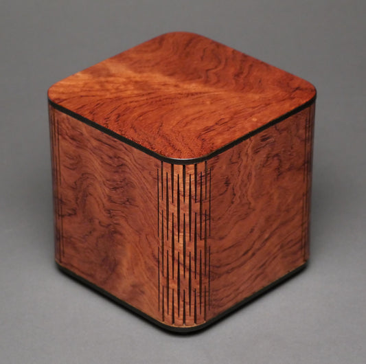 Geometric Cremation Urn for Small Human or Pet Ashes, Exotic Woods, 65 cu-in